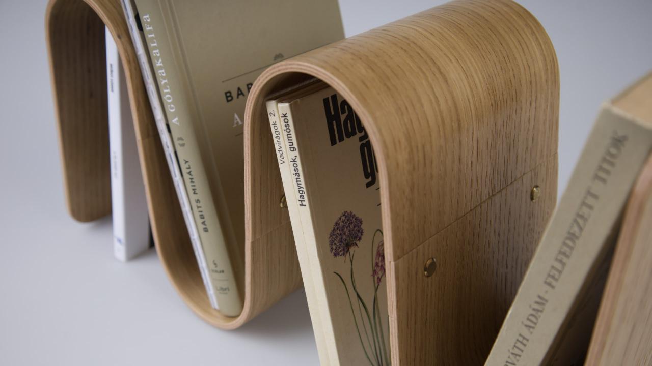 MEANDER könyvtámasz íves kialakítással, rétegelt lemezből, könyvek elegáns rendszerezésére.